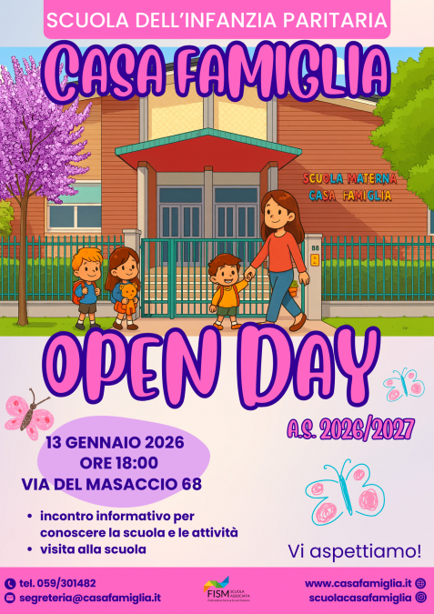 L'Open Day della Scuola dell'Infanzia sarà il 13 gennaio 2026 alle ore 18.00!
